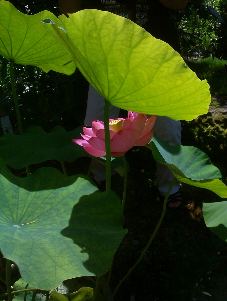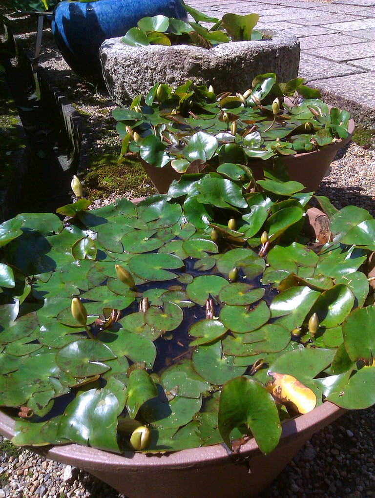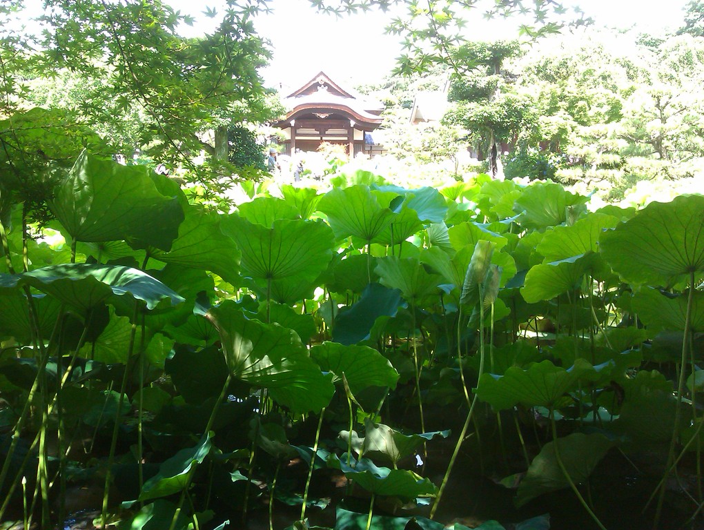 庭の池は、蓮の葉でほとんど埋まっていた。