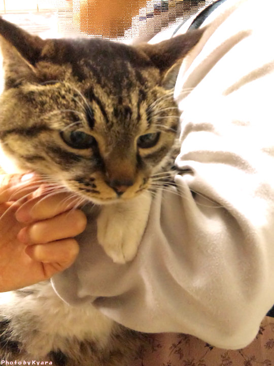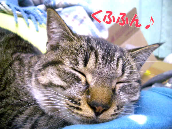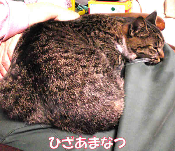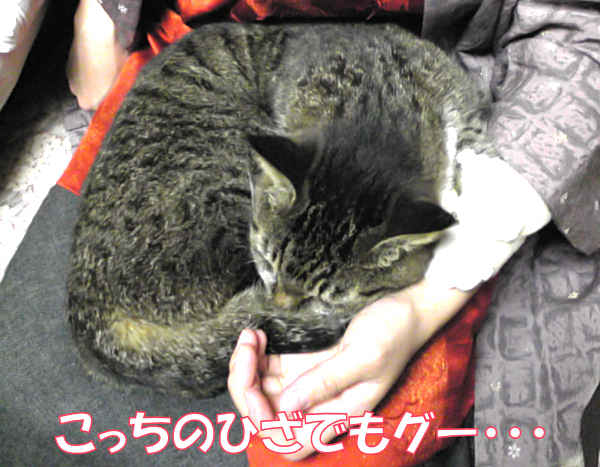 今度は私の膝で…眠かったのか…、今日はあっちの膝でもこっちの膝でもすぐ寝る。