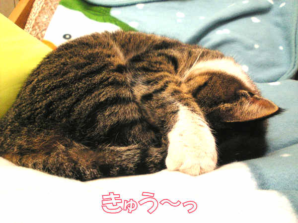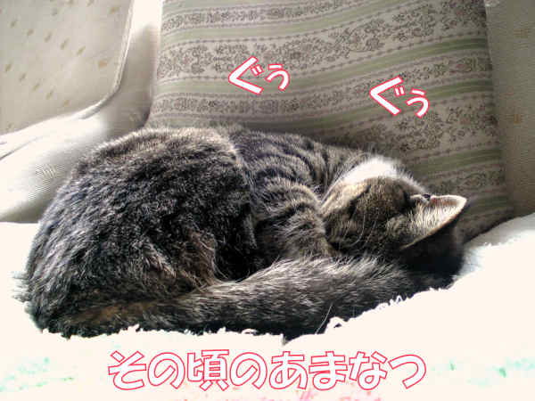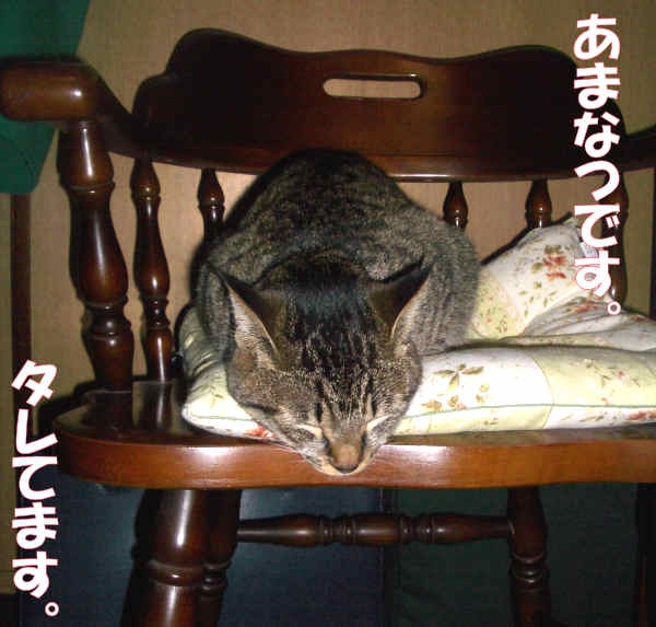 寝床のイスで四角くなって、ちょっとため息な雰囲気。