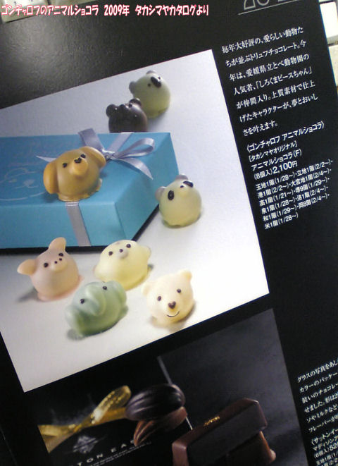 今回はバレンタイン時期のタカシマヤのチョコカタログより。神戸のお菓子屋さん「ゴンチャロフ」のアニマルショコラ(o^^o)