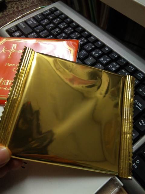 シルバーの板もしっかりチョコレートで、最初にこれをちょこっとかじっただけでも