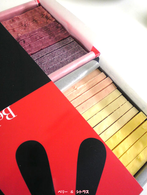 上の箱はベリー(ラズベリー、ブルーベリー、ストロベリー)。下の箱はシトラス(グレープフルーツ、オレンジ、レモン)。
