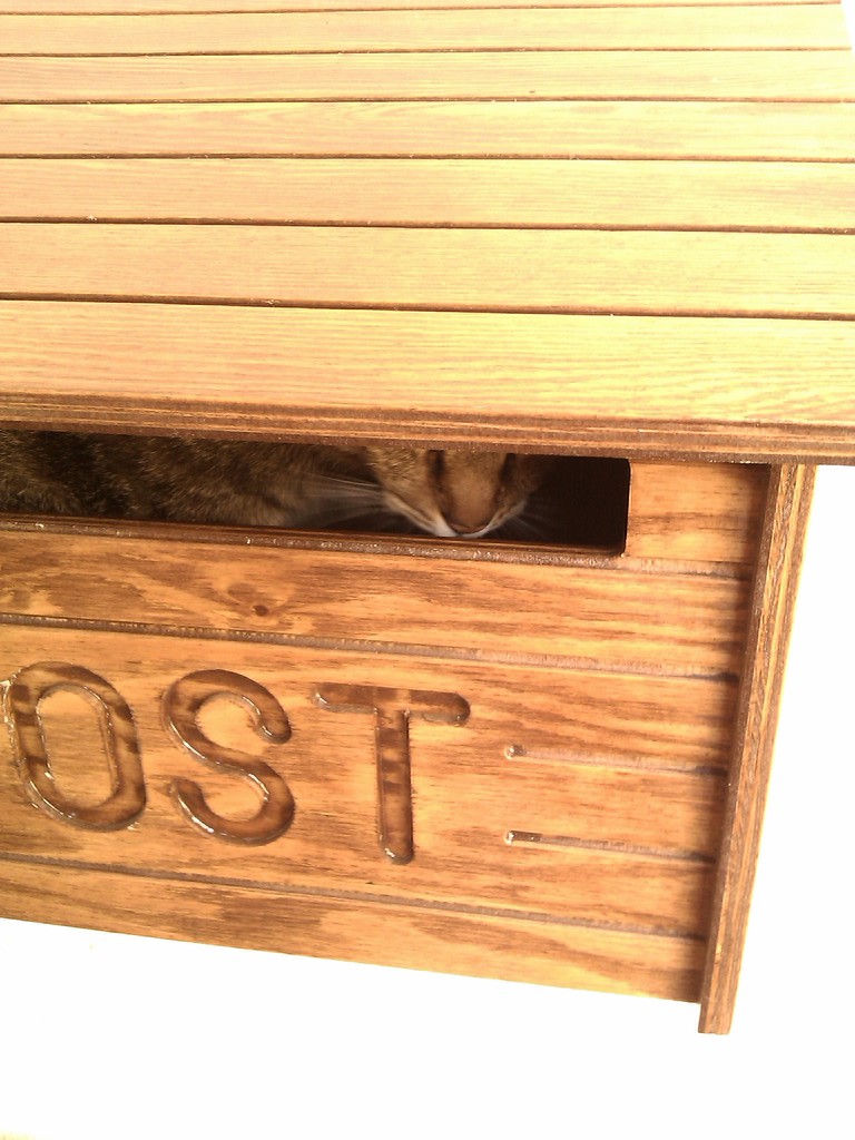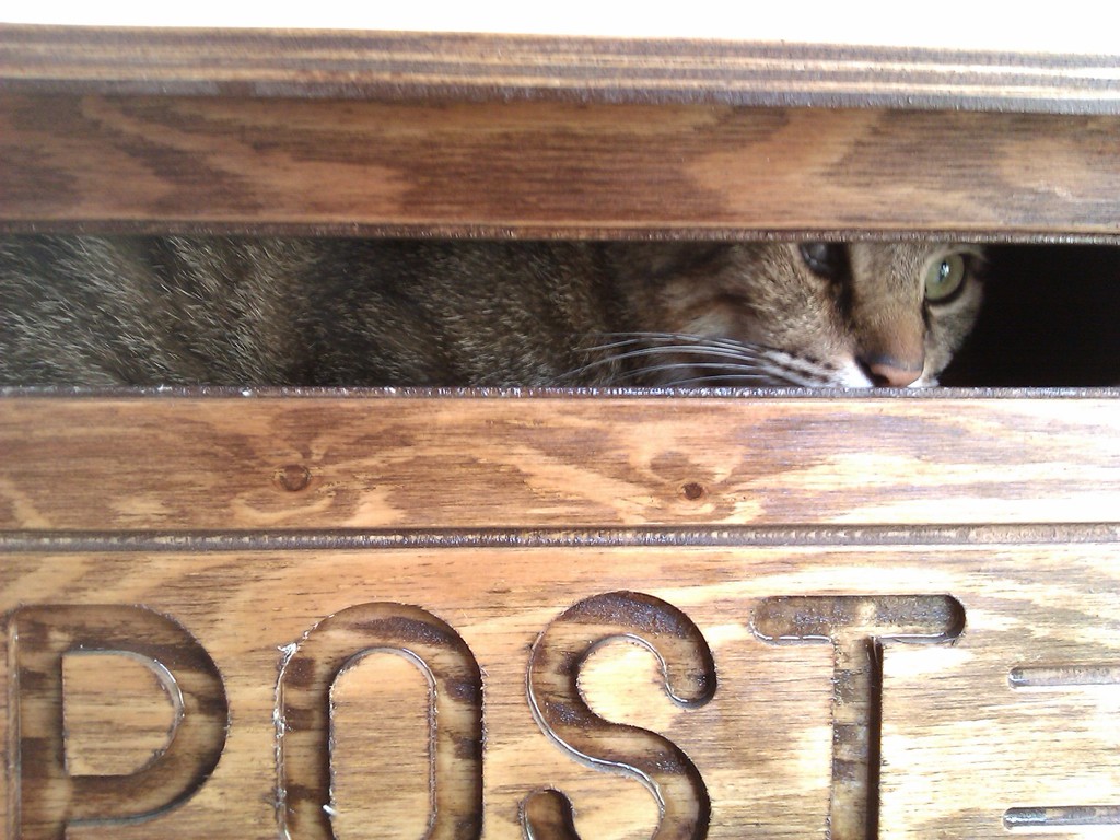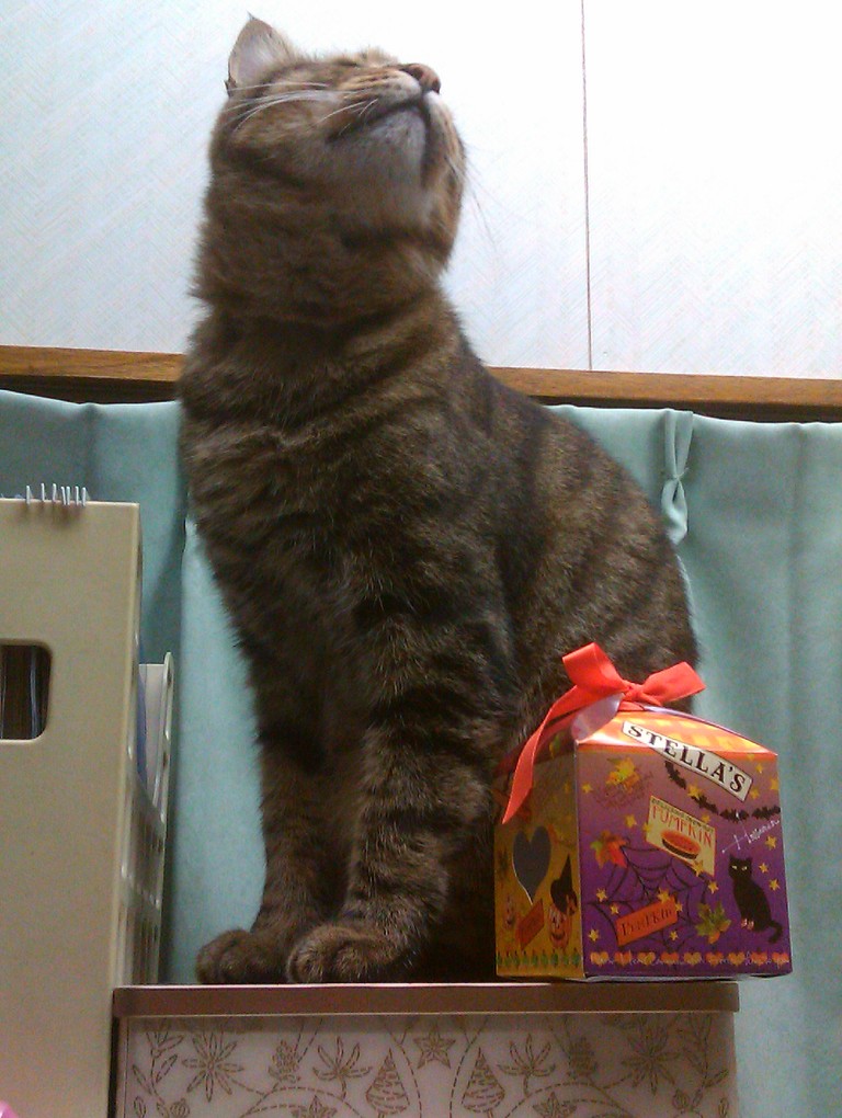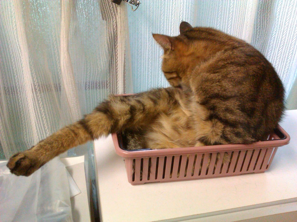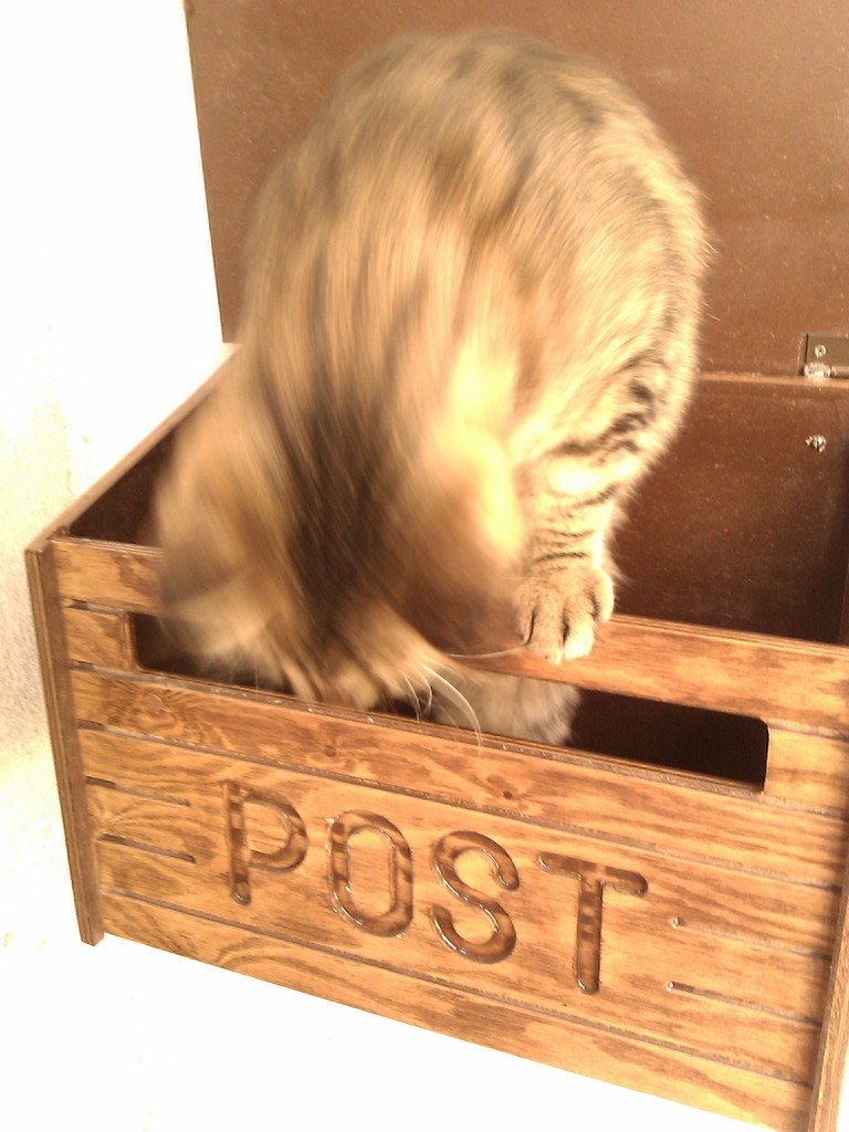 2010年11月13日 箱入り○○ ◆段ボールに収まりこむ政宗 夏は窓際の段ボールが涼しくて好きそうだったけど、さすがに冬は窓際は寒いだろう…と思ってたんだけど、今日はちょっとあたたかいし案外良いみたい。 夏に段ボールを設置していたところにポンとおいてやったらいそいそ入り込んで、あっという間に丸まってしまった。