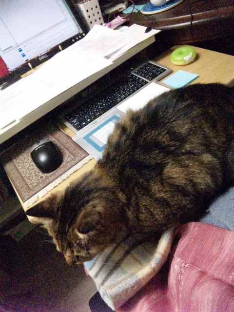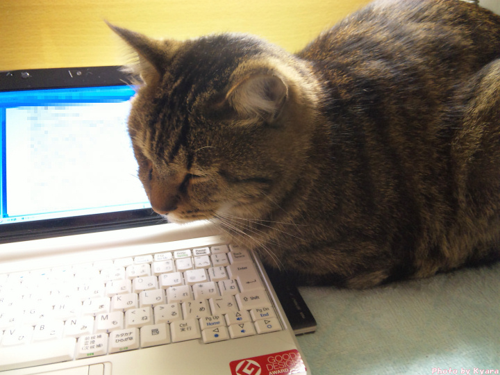 2010年11月16日 安眠妨害されて舟をこぐ政宗(^^;;; ◆舟をこぐ政宗 仕事が忙しくてベッドにミニパソコン持ち込んで終末努力現象やってたら、 政宗ちゃんが「ぼくねむいのー(>_<)」と言わんばかりに座り込み。 パソコンの横でコックリコックリ…。