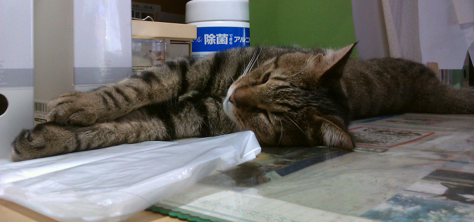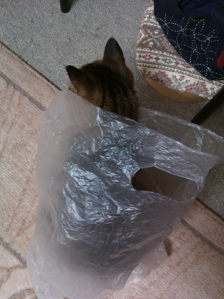 2011年12月02日 何かに包まれていたい政宗 朝は外に出たくないと、クリーニングのビニール袋に入る。身づくろいをしたり、四角くなっちゃったりもする。 夜は私の部屋着の上でちゃっかり四角くなっちゃったり。ちょっとあったかそうだと乗っちゃう。